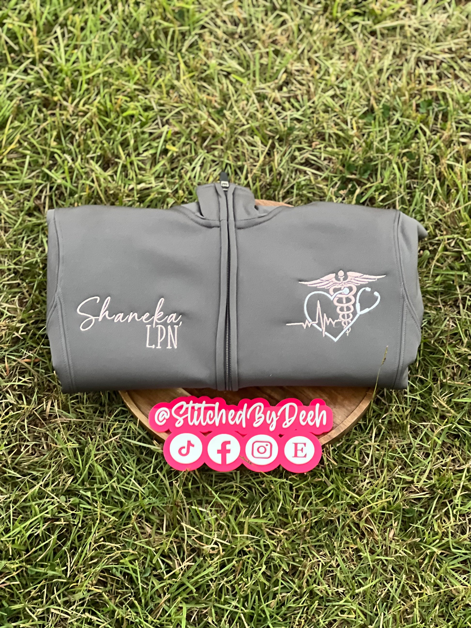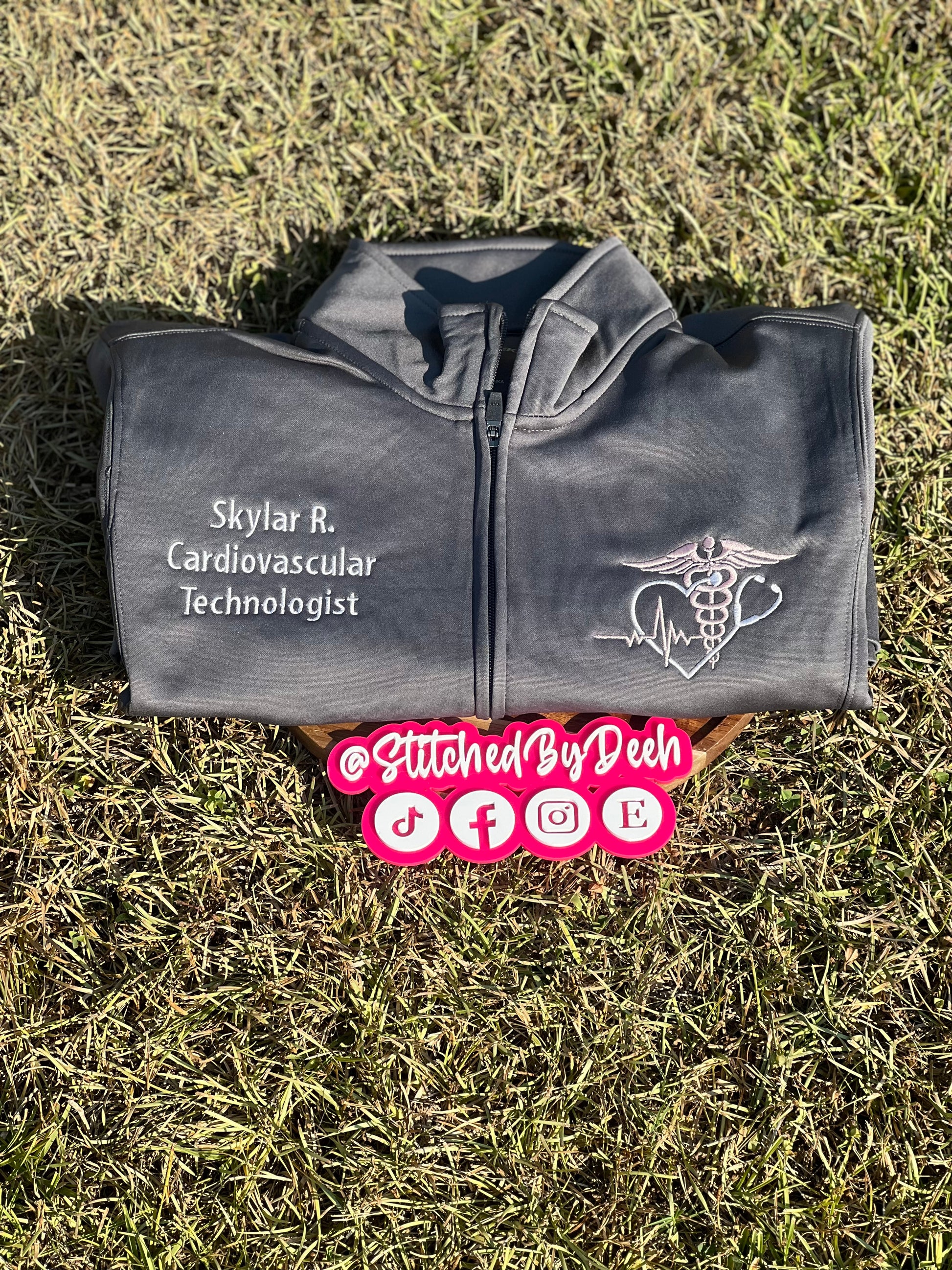 Perfect for layering over scrubs or wearing between shifts, this fleece jacket delivers warmth without the bulk—because professionals deserve performance gear too.