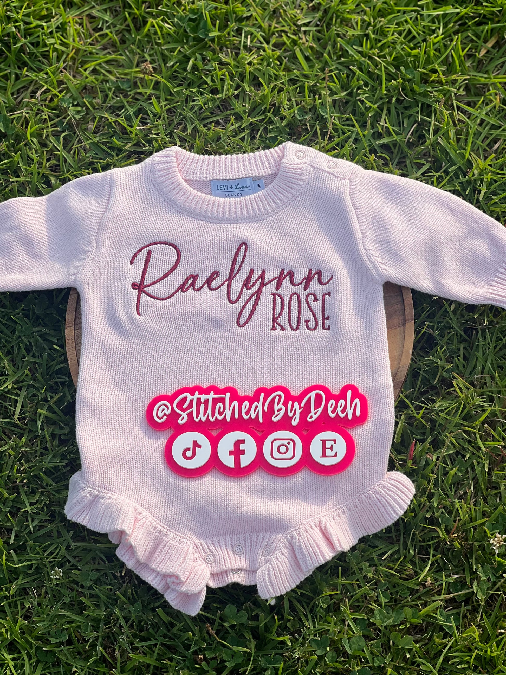 Soft, sweet, and stitched with love — our knit ruffle rompers are made for picture-perfect moments and everyday snuggles. Featuring delicate ruffle details and custom embroidery (like baby names or special words), each romper is designed to feel as special as your little one.